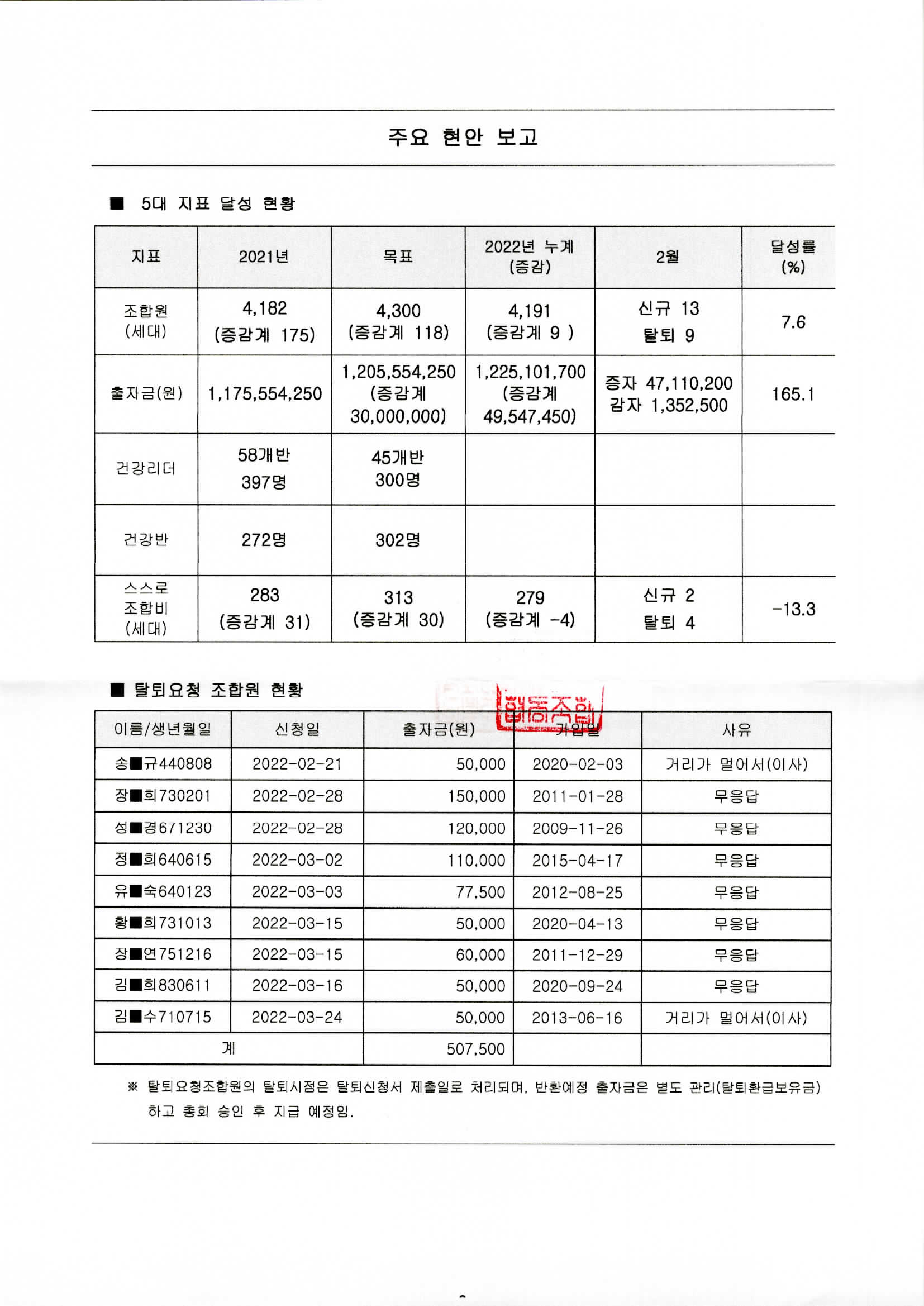 탈퇴 및 출자금반환 신청