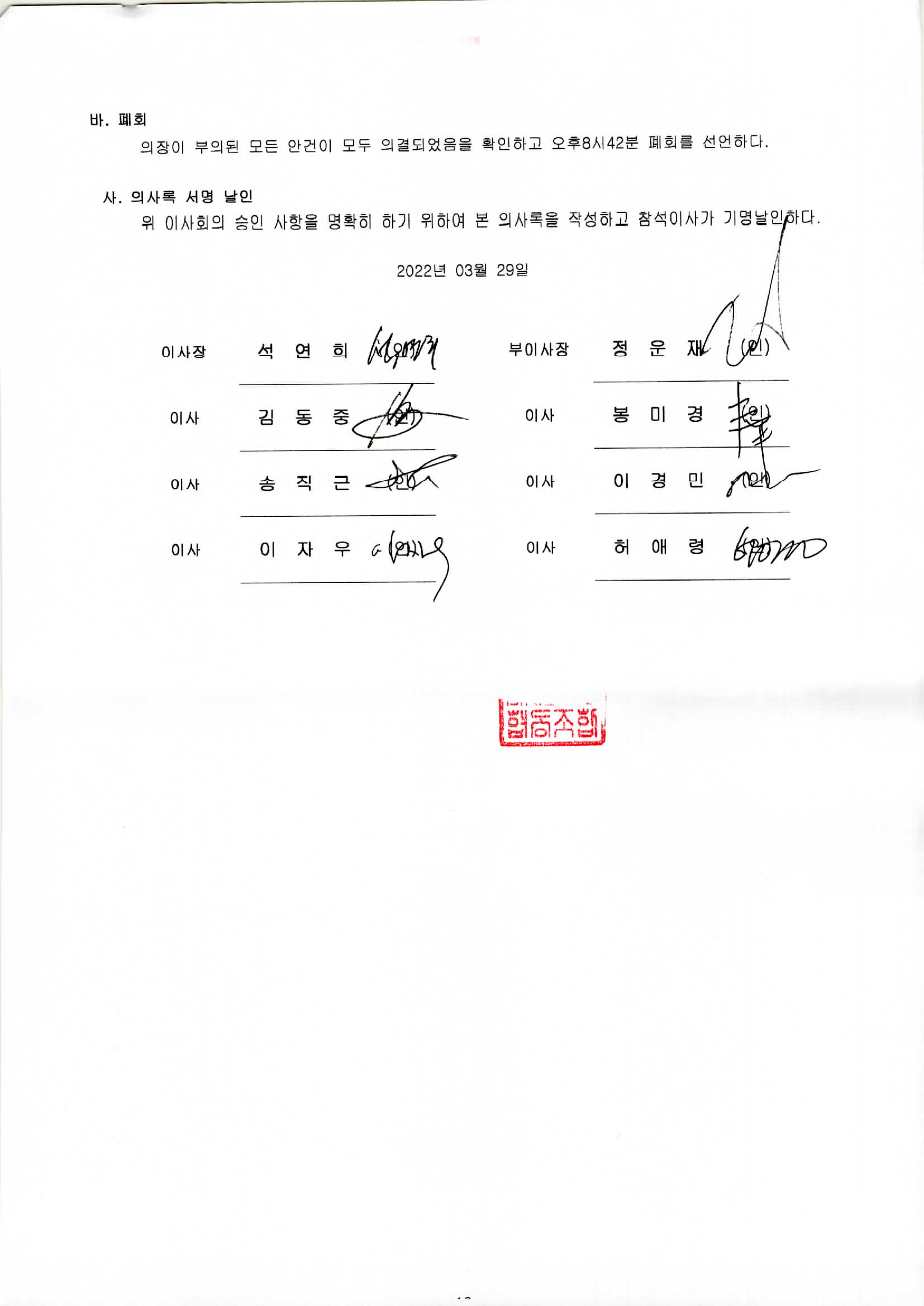 [2022-03] 정기이사회 결과보고