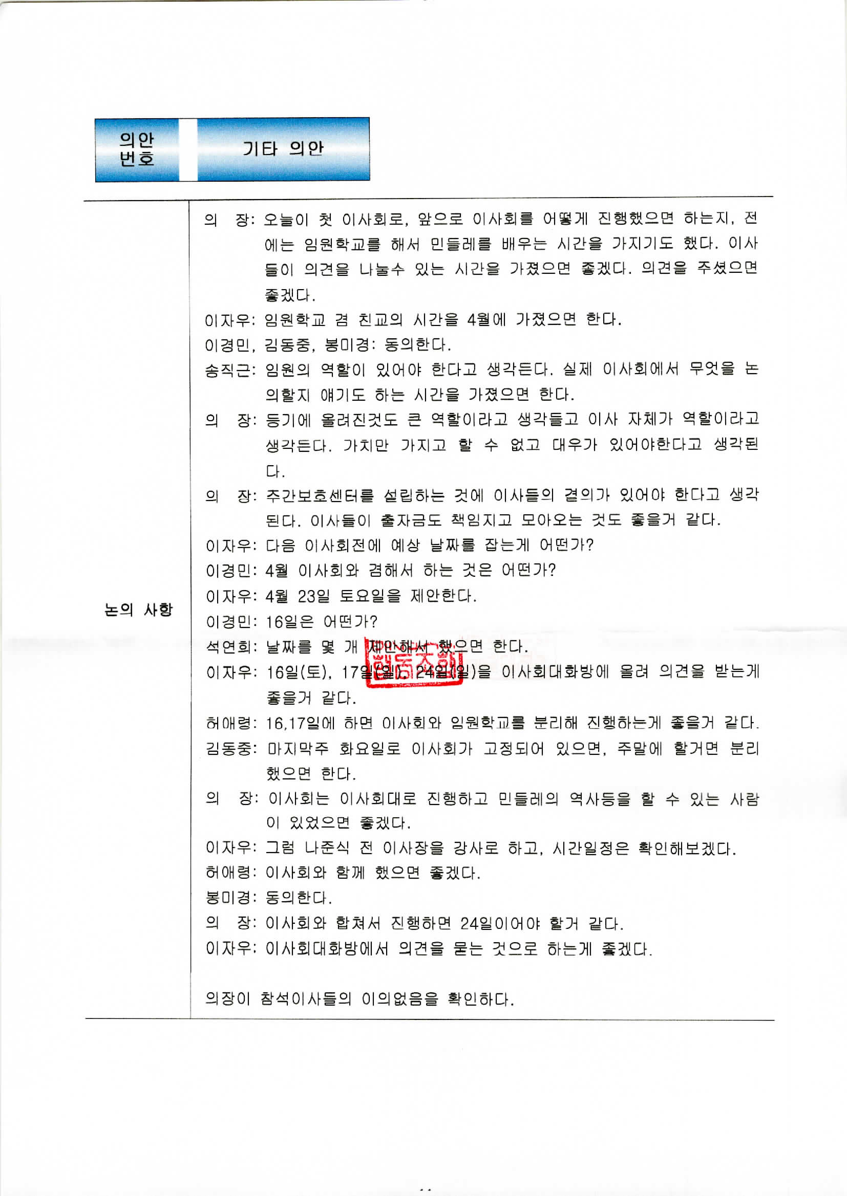 이사회회의록