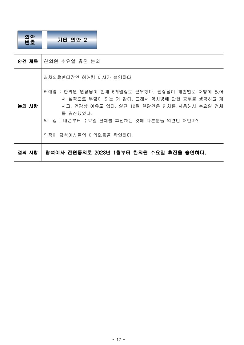 [2022-12] 정기이사회 결과보고