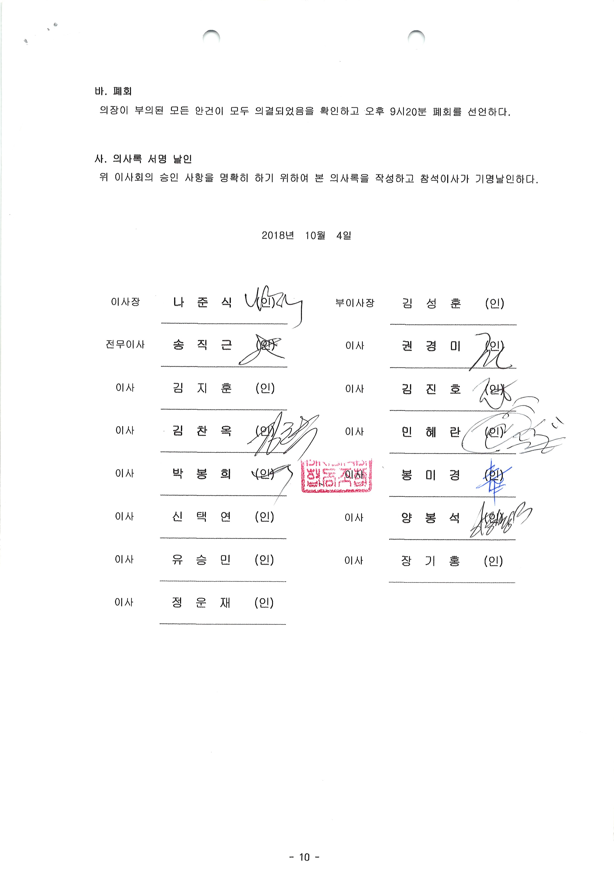[2018-9] 정기이사회 결과보고