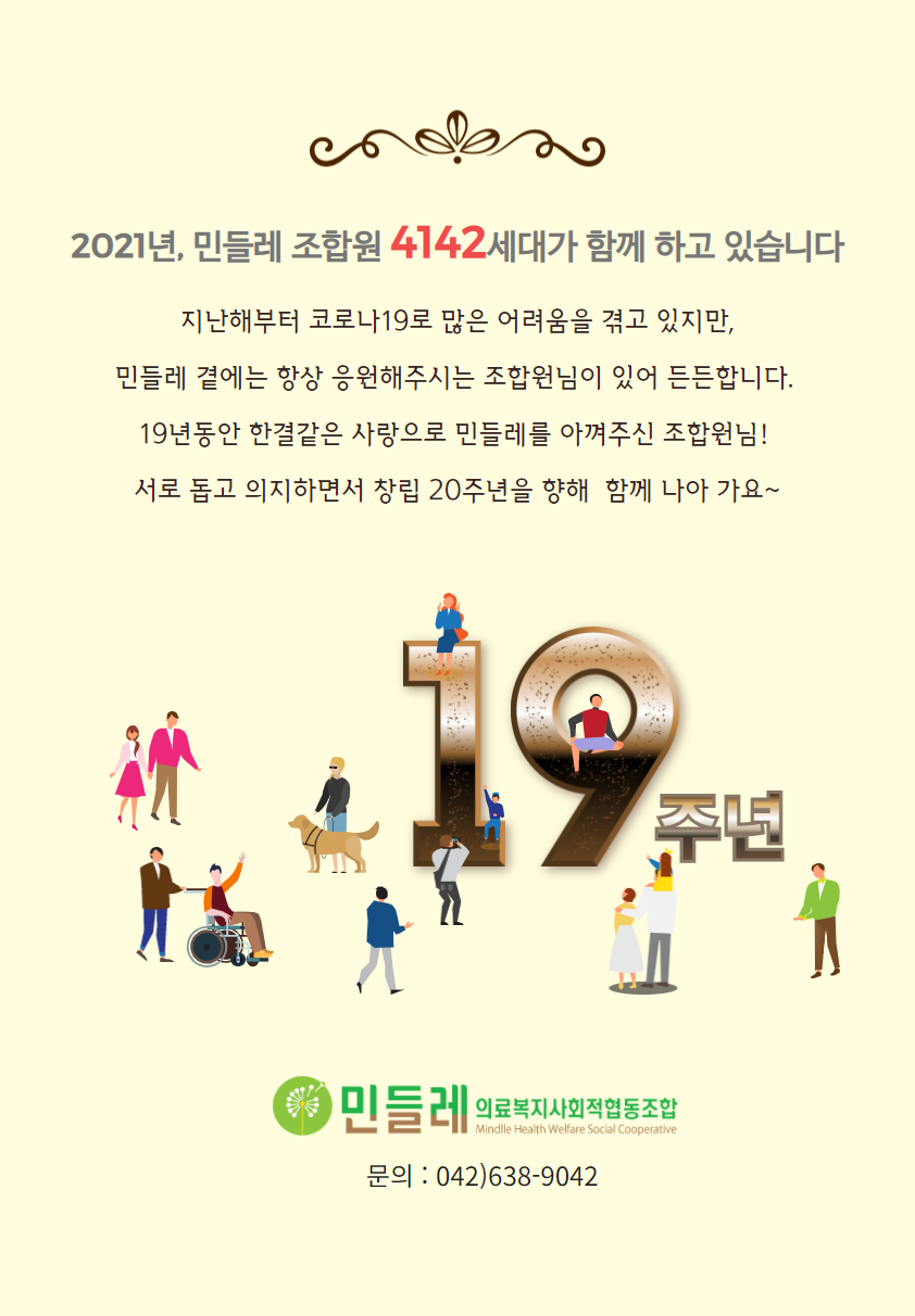 민들레의료복지사회적협동조합이 벌써 19살이 되었습니다.