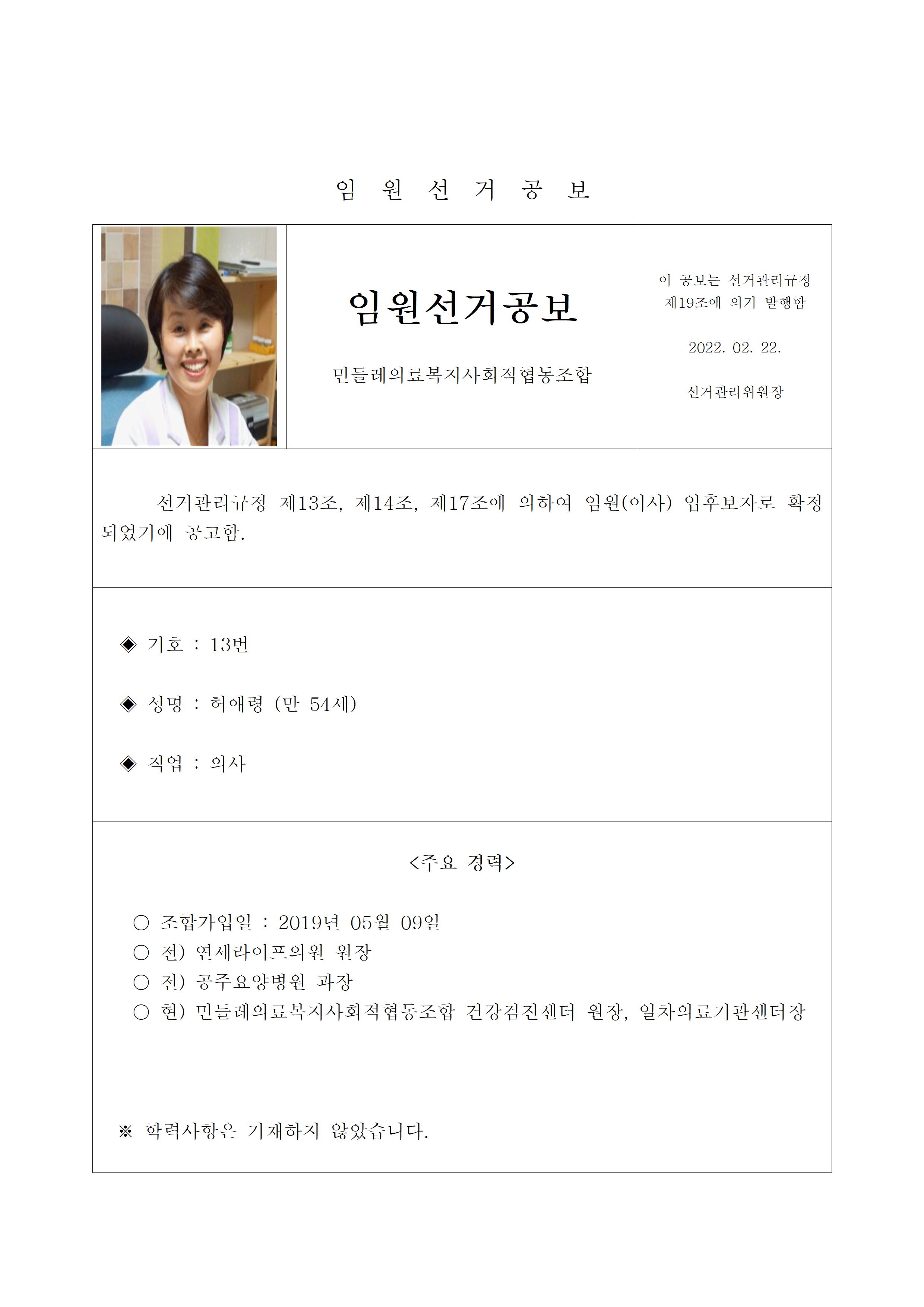 2022년 민들레의료사협 임원(이사, 감사)선거 공보