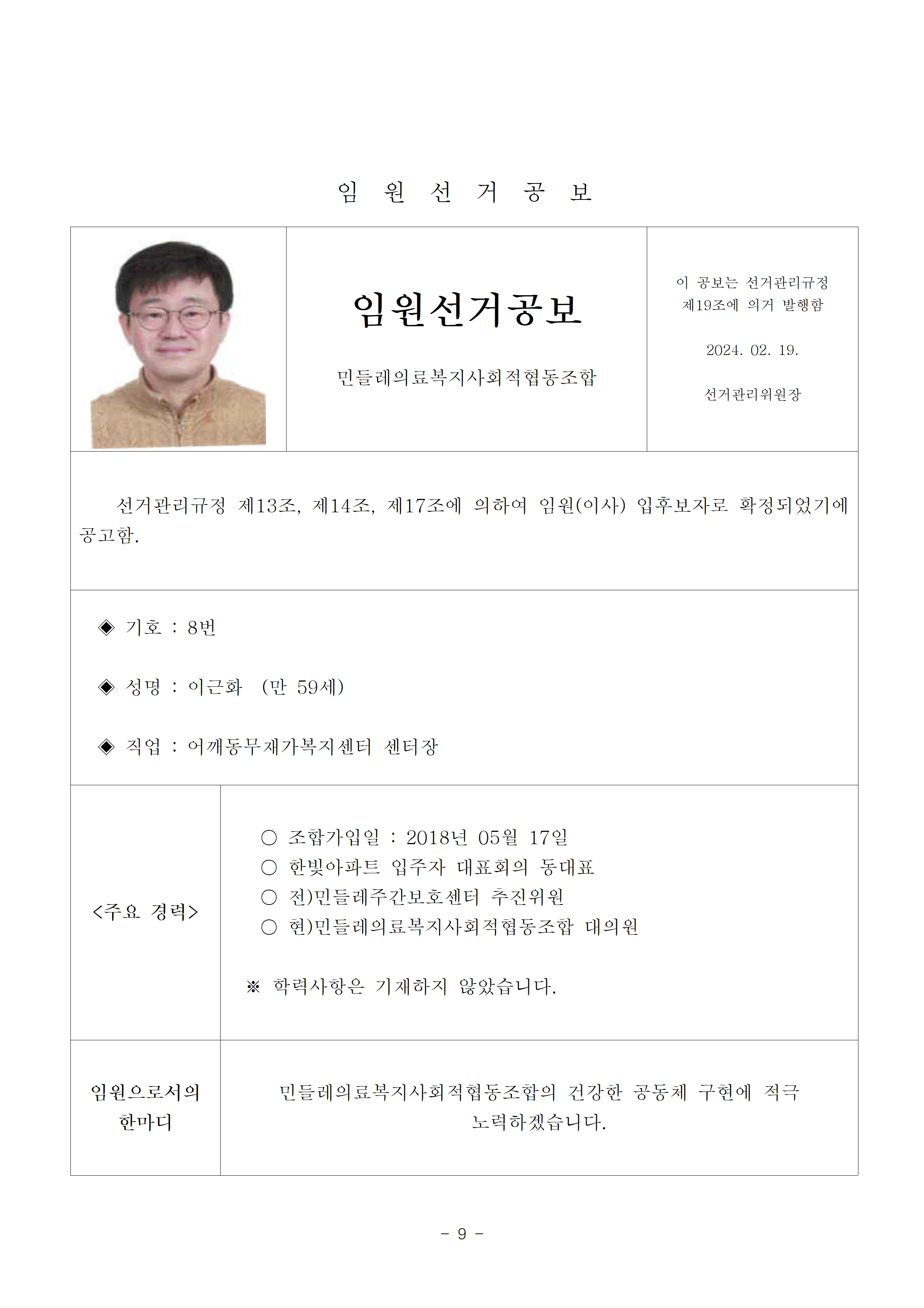 2024년 민들레의료사협 임원(이사, 감사)선거 공보