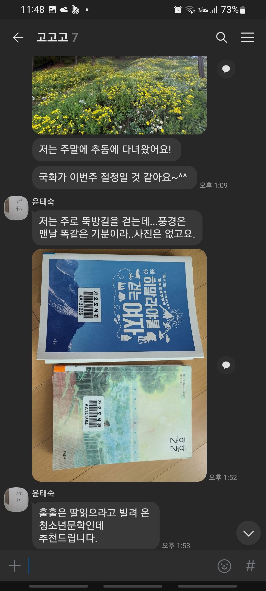 최근 읽은책 카톡 공유및 추천했어요^^